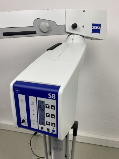 The Zeiss OPMI Vario S8 is an advanced surgical microscope designed specifically to meet the demands of modern surgical procedures. With its exceptional optical performance, the microscope provides precise and clear images essential for microscopic details. It features motorized zoom and focus, allowing seamless adjustments during surgery without compromising sterility. The ergonomic design ensures easy handling and increased comfort for the surgeon. The modular construction of the OPMI Vario S8 allows integration of various accessories to cater to individual needs in neuro, spine, ENT, and plastic surgery. The advanced illumination technology ensures homogeneous and shadow-free lighting of the surgical field.