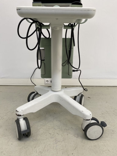 Features: The monitor is mounted on an ergonomic, lightweight, and compact trolley. It can swivel 180° and is adjustable in height and width. Certification according to DIN 6868-157 is available upon request.